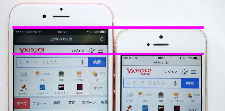 右はiPhone5sですが、iPhone SEと同じ大きさなので、比較してみました。