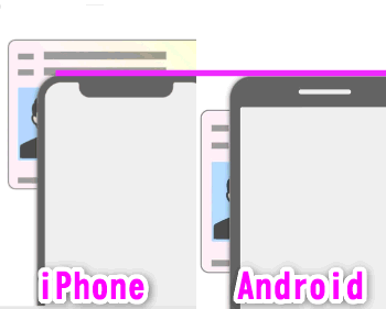 イラストでこんな感じにマイナンバーカードの上にiPhoneを乗せてください、と表示されます。ちなみにアンドロイドの場合は、カードの位置がもう少し下になります。