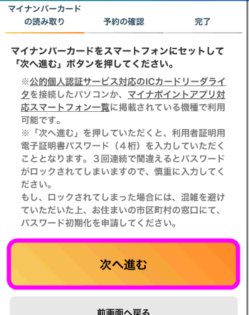 「予約」はマイナポイントを使えるように申請すること。