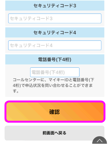 「セキュリティコード3」と「セキュリティコード4」そして、「電話番号(下4桁)」は入力しなくても構いません。