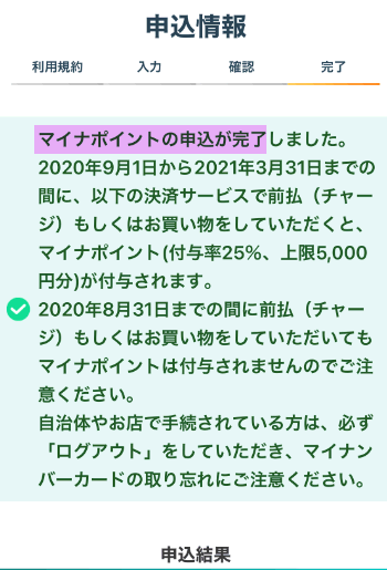 「申し込み」はマイナポイントを電子マネーやクレジットカードのポイントに交換できるように結び付けることです。