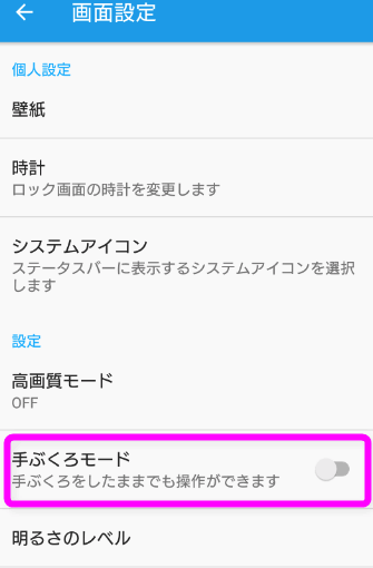 「手ぶくろモード」をオンにします。