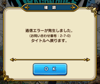 データ引継ぎ後、古いスマホ側でドラクエウォークを立ち上げてみると、「通信エラーが発生しました」「お問い合わせ番号:2-7-0」というエラーが表示されるようになってしまいました。