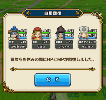 無事、経験値などがそのまま復活しました。しかも引き継ぎ前のHPのまま復元。完全回復していませんでした。(笑)