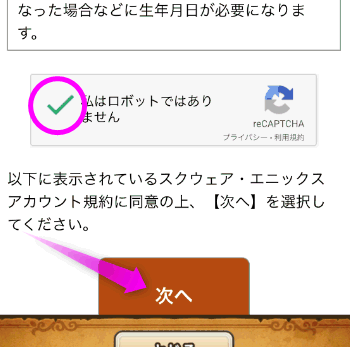 「規約に同意してSQUARE ENIX ACCOUNTで登録」をタップします。