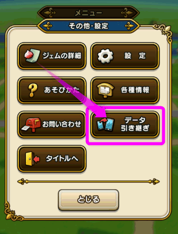 起動したらオープニング画面で「データ引継ぎ」をタップします。
