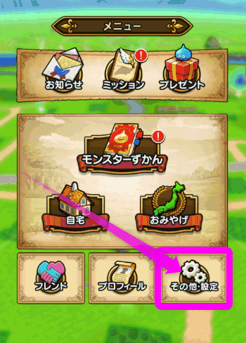 まずはドラゴンクエストウォークをプレイしていた古い機種側の操作です。