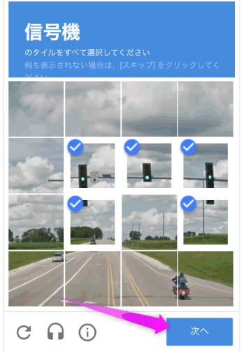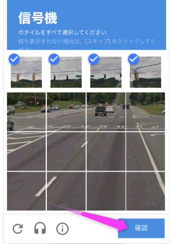と、再び違う画像で信号機のマスを選択する画面が表示されました・・・。