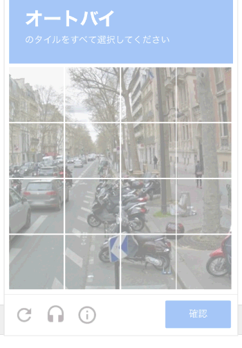 ちなみにこのようなオートバイが写っている部分を選択しろ、というバージョンもあります。