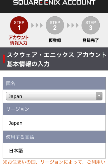 もし私のようにまだアカウントを持っていなければ、「スクウェア・エニックスアカウント新規登録」をタップします。