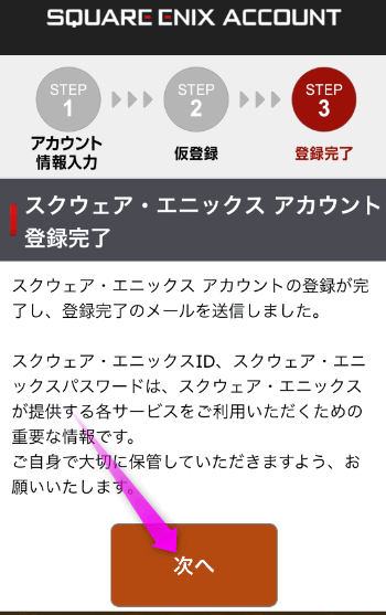 「スクウェア・エニックス アカウント」が登録完了しました。