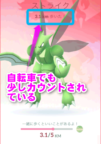 ポケモンGoは、ポケモンの中から1匹選んで相棒にでき、一緒に歩いた距離をカウントしてくれる機能があるのですが、なんと自転車でもカウントされていました。