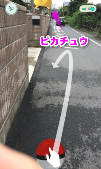 うまくモンスターボールをピカチュウに当てると、捕まえることができました。