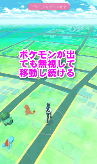 しばらく移動すると、このように再び3匹のポケモンがマップ上に表示されます。が、さらに無視し続けます。