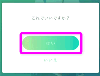 誰も取得していないニックネームだと、このような確認画面になるので、「はい」をタップします。