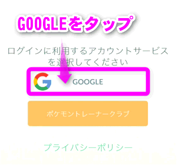 ログインに使用するアカウントを選択します。今のところ、「Googleアカウント」か「ポケモントレーナークラブ」の2つから選択できるようです。