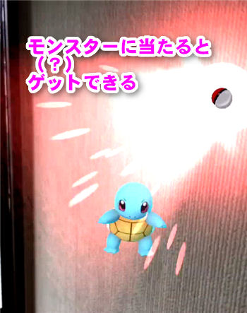うまくポケモンに当たると、このように火花が表示され、ポケモンをゲットできます。