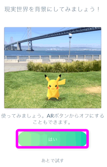 カメラを使って外の景色をディスプレイに表示させるか聞いてくるので、「はい」をタップします。