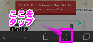 「Poke Vision」のページを表示させた状態で、画面下のブックマークのアイコンをタップします。