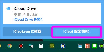 画面下にこのような表示が現れるので、「iCloud 設定を開く」をクリックします。
