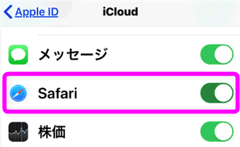 Safariの部分がオン(黄緑色)になっているか確認します。