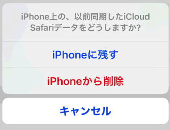 iCloud経由で同期したブックマークを残しておくか削除するか聞いてくるので、「削除」を選択します。