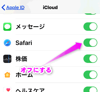 iCloudのブックマークの同期をオフにする