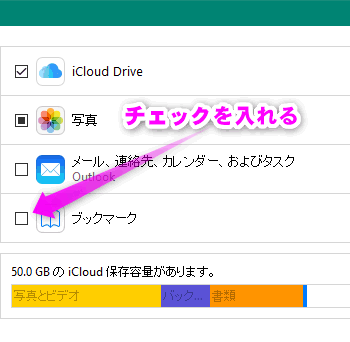 あらかじめiCloud for Windwosをインストールしておきます。iCloud for Windwosのインストール方法や設定は、リンク先で詳しく解説しています。