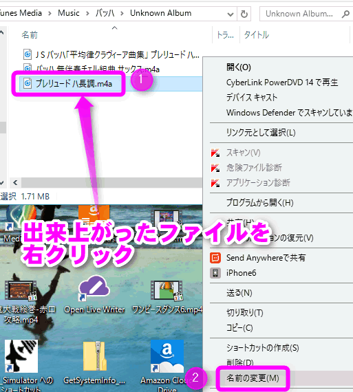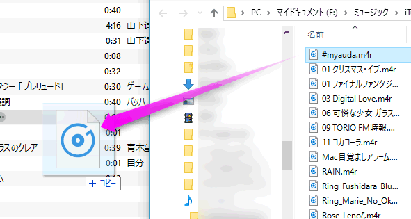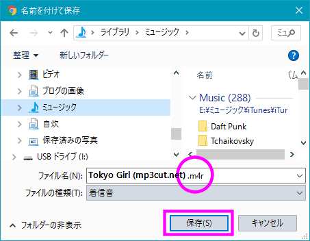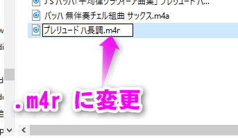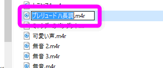 そのファイルを右クリックでwindowsエクスプローラーで開き拡張子をm4aからm4rに変更して