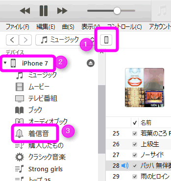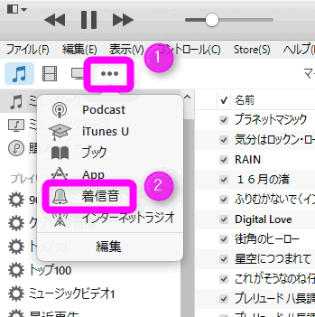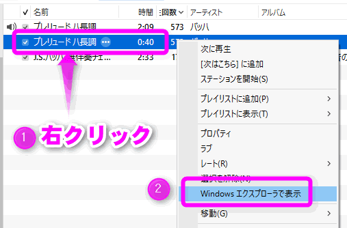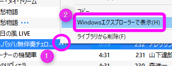 ①着信音にしたい曲を右クリックし、
