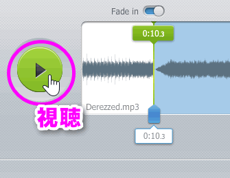 フェードイン、フェードアウトは、徐々に音を大きくしたり、徐々に音を小さくする設定です。