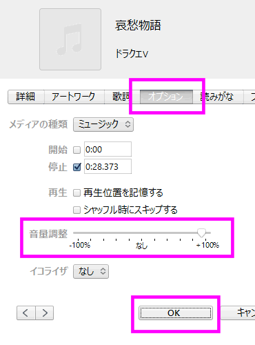 itunesにmp3の曲を入れてAACに変換しました。30秒です。
