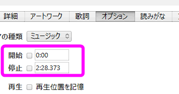 着信音の元となった曲の「開始」と「停止」のチェックを外してください。
