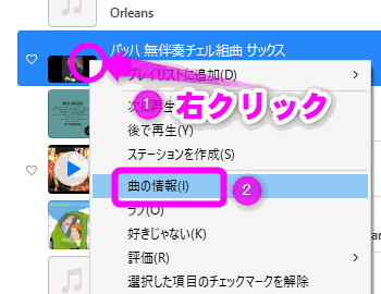 ②「曲の情報」をクリックします。