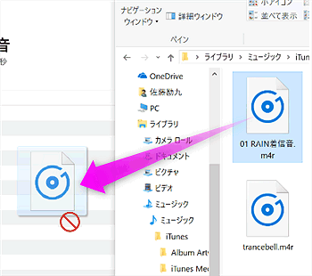 デスクトップに置きそれをitunesでiphoneの着信音の所にドラック&ドロップしようとするとエラーマークみたいなやつが出てドロップできませんでした。