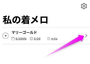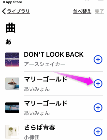 着信音にしたい曲の右横にあるプラスのアイコンをタップします。