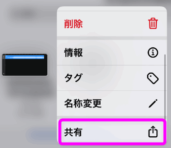 長タップ(iPhone X以降は強く押す)すると、このような吹き出しのメニューが表示されます。