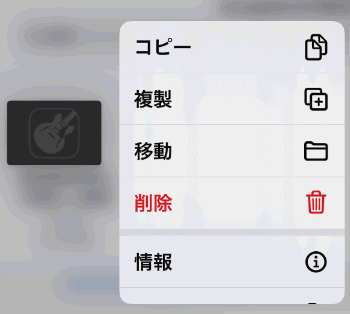 転送された曲のアイコンをiPhone Xシリーズの場合は強く押し、その他のiPhoneの場合は、長タップ(指をタップしたまま)にします。