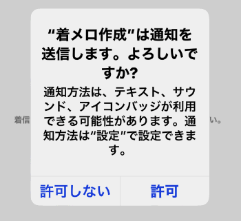 着信メーカー(着メロ作成)」を立ち上げます。はじめて起動した場合、このように通知を許可するか聞いてきます。どちらでもいいのですが、「許可」をタップします。