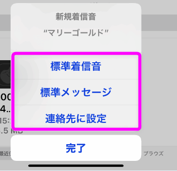「連絡先に設定」は、特定の相手からの電話、もしくはメッセージを作成した着信音にしたい場合です。