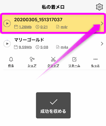 ポロンという音がして、着信音用のファイルが作成されました。