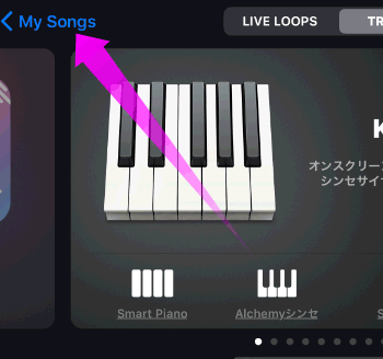 もし、このような画面が表示されてしまった場合は、「My Songs」をタップしてください。