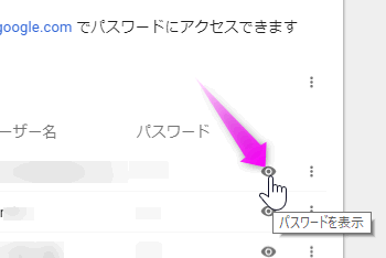 ただし、このままだとパスワードは表示されません。パスワードを表示させるにはその隣の「目」のようなアイコンをクリックします。