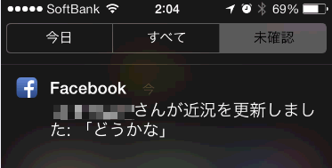 Facebookの特定の人の更新通知をなくすには