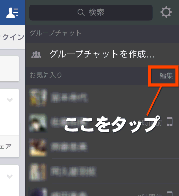 右上の方に小さく「編集」という部分があるので、ここをタップします。