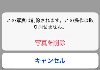 完全に削除すると復元ができないという警告が表示されるので、「写真を削除」をタップします。