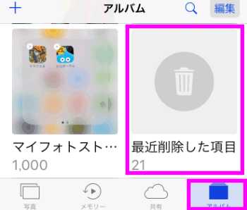 アルバム一覧の中から「最近削除した項目」を探しタップします。