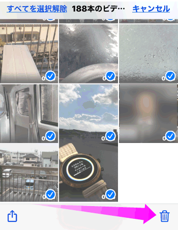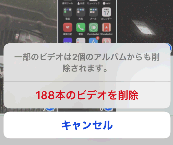 本当に削除していいか聞いてくるので、「〇本のビデオを削除」をタップします。