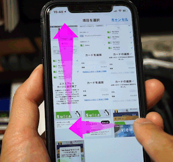続いて指を画面から離さずに上にスライドさせます。