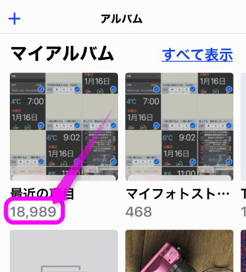私の場合はこのブログ用にスクリーンキャプチャーをしているので、「スクリーンショット」というアルバムに大量に画像が保存されています。